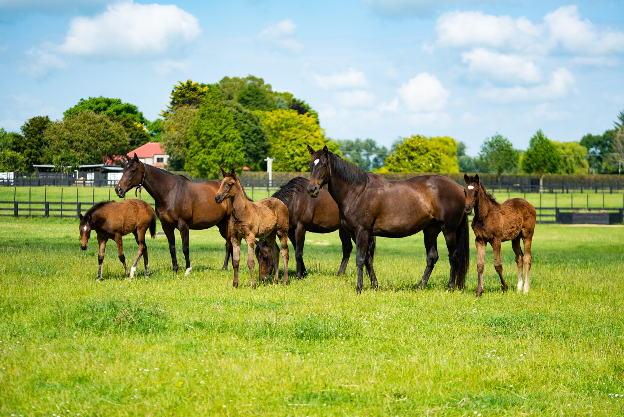 The combination of top sires, a select band of broodmares, and the temperate Waikato climate allows young thoroughbreds to grow with natural strength and good bone.
